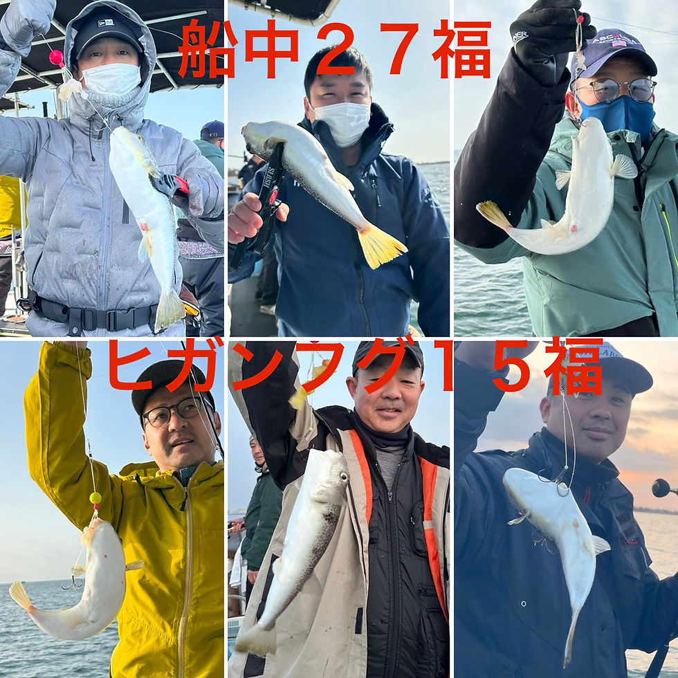 【ショウサイフグ】9名様乗船・船中27福・ゲスト(ヒガンフグ)竿頭5福・ヒガン1福・次ヒガン5福・最大37cm