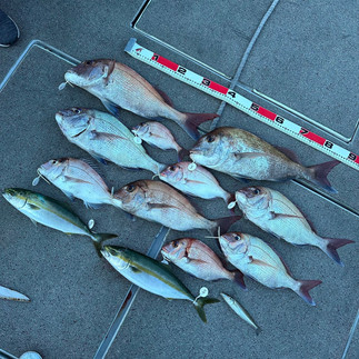 釣果は、船中鯛10枚・ツバス2本・良型キス1本・チャリコのリリース3枚❓